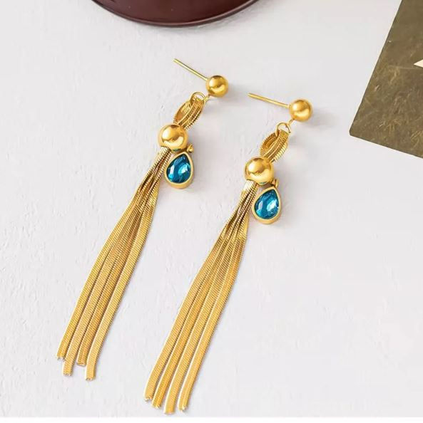 Paslanmaz, Kararmaz Çelik Uzun Püsküllü Sallantılı Damla Küpe